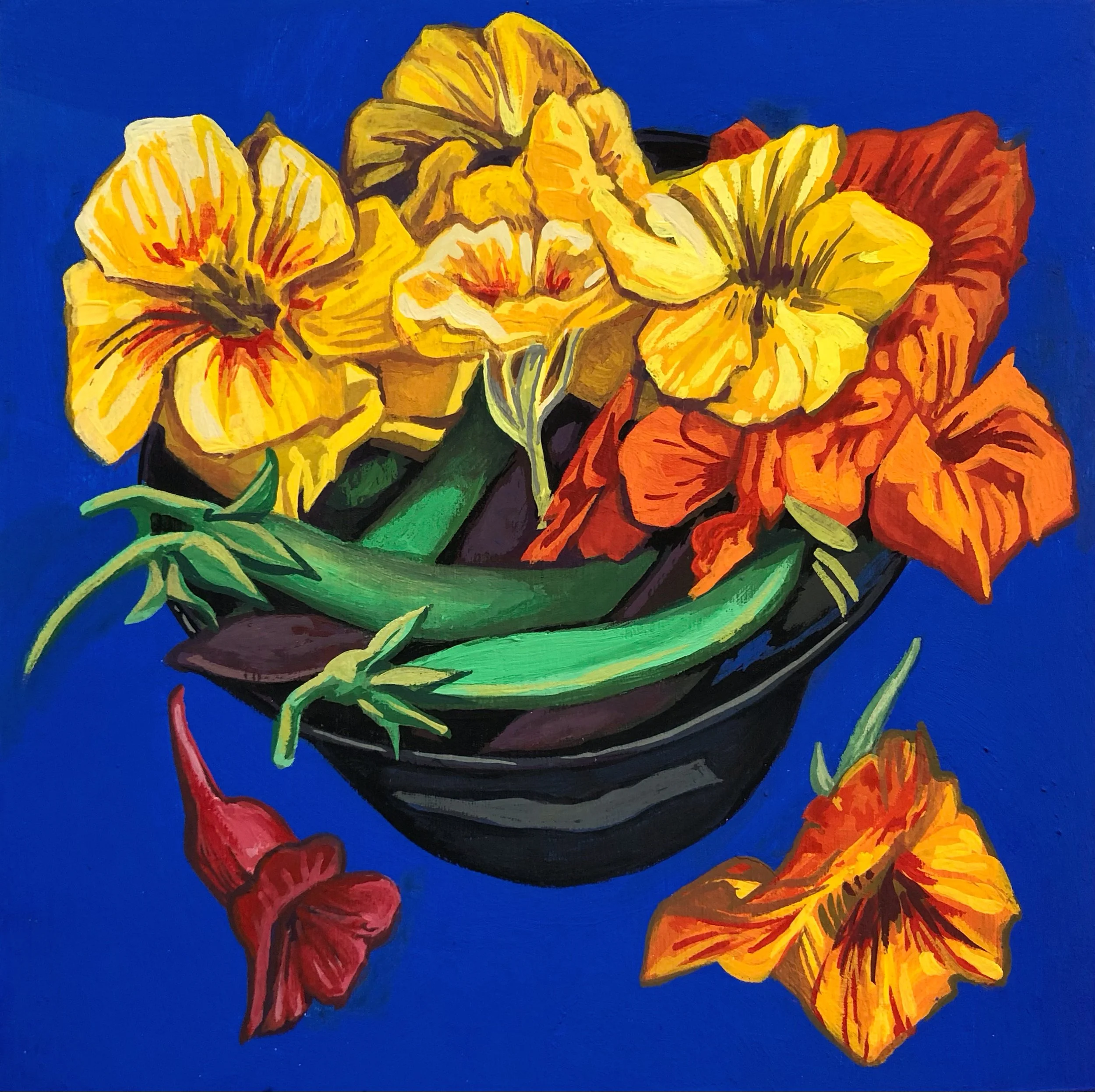 "Slow Blooming Summer" gouache on panel 6 x 6" 2022