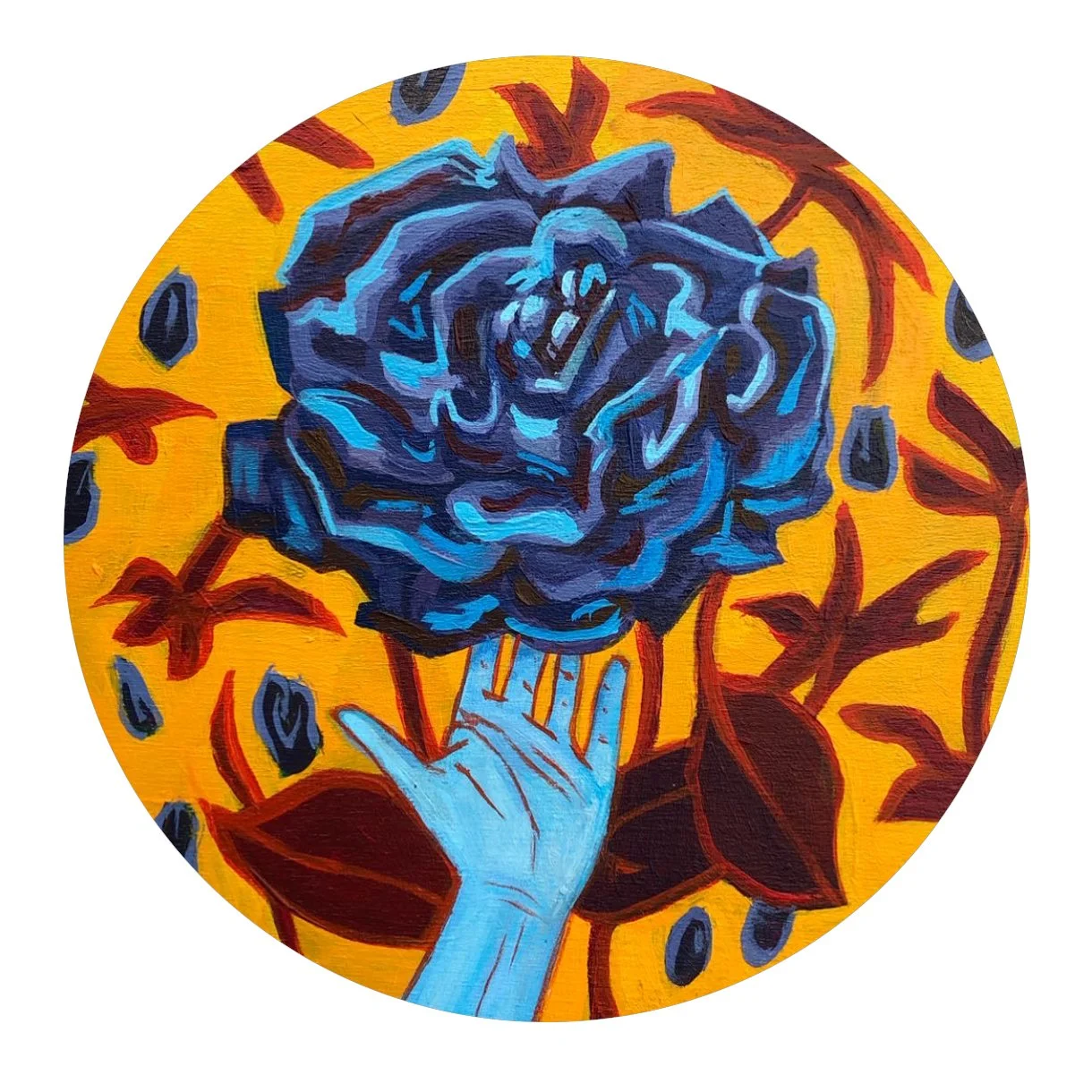 "Summer Melancholia" acrylic on panel 6" round 2023